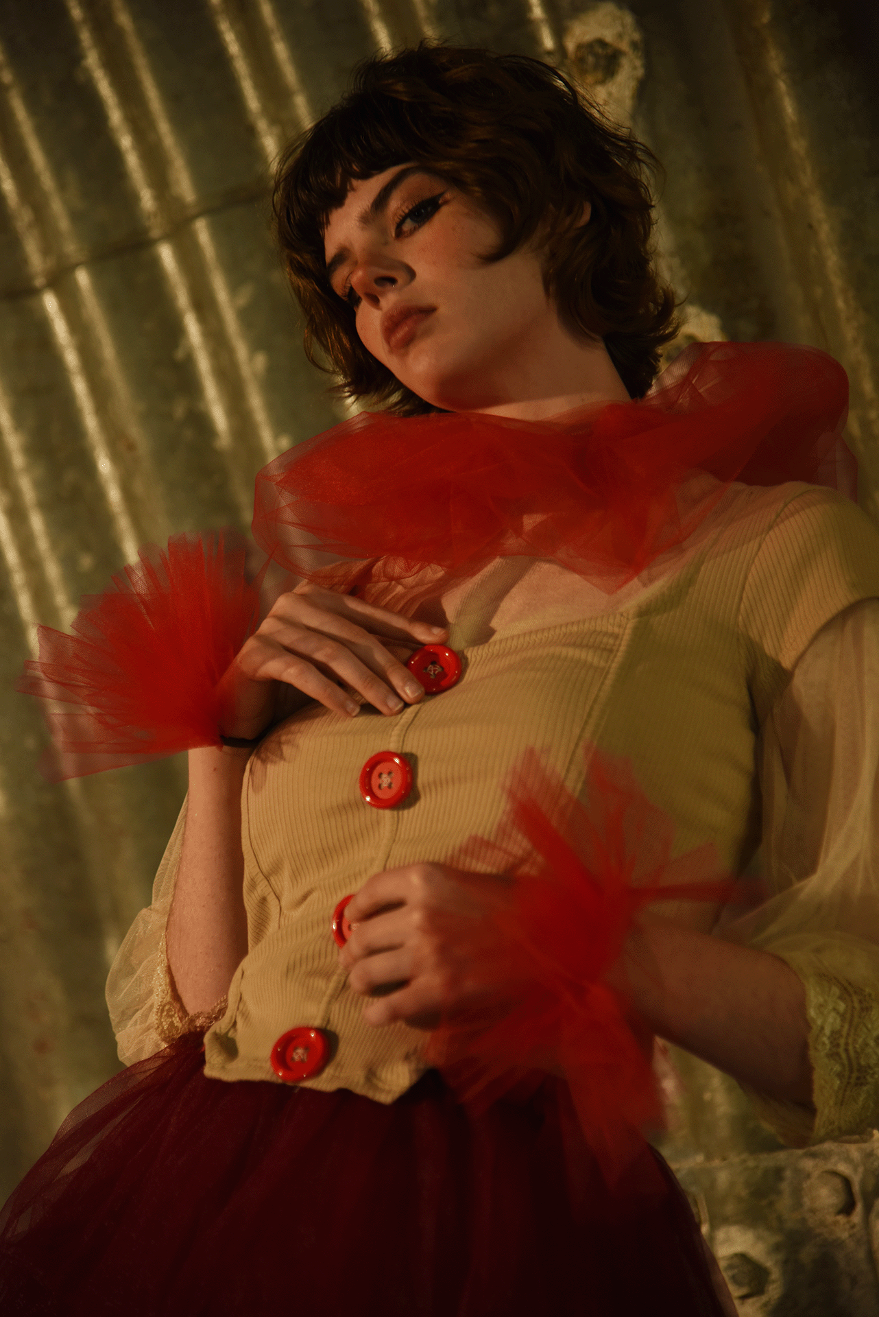 Carnival Side Show is a couture based fashion magazine with a narrative throughout, of the popular horror movie “IT”. For those unfamiliar IT is a horror movie about an evil entity that presents itself as a clown that feeds off the fear of children.
